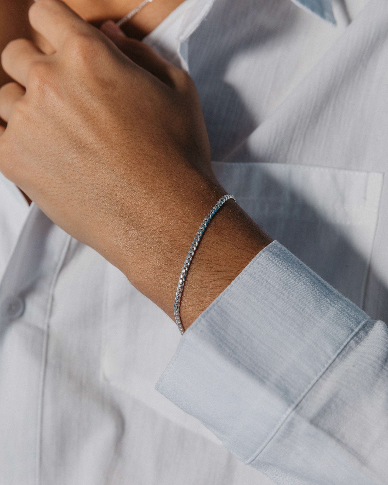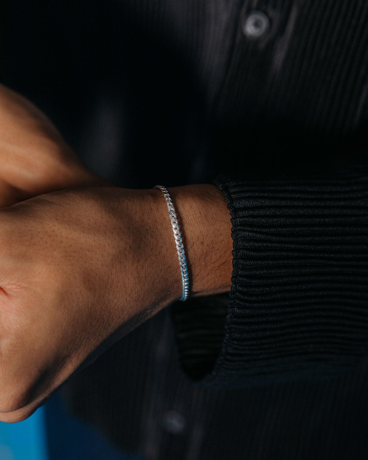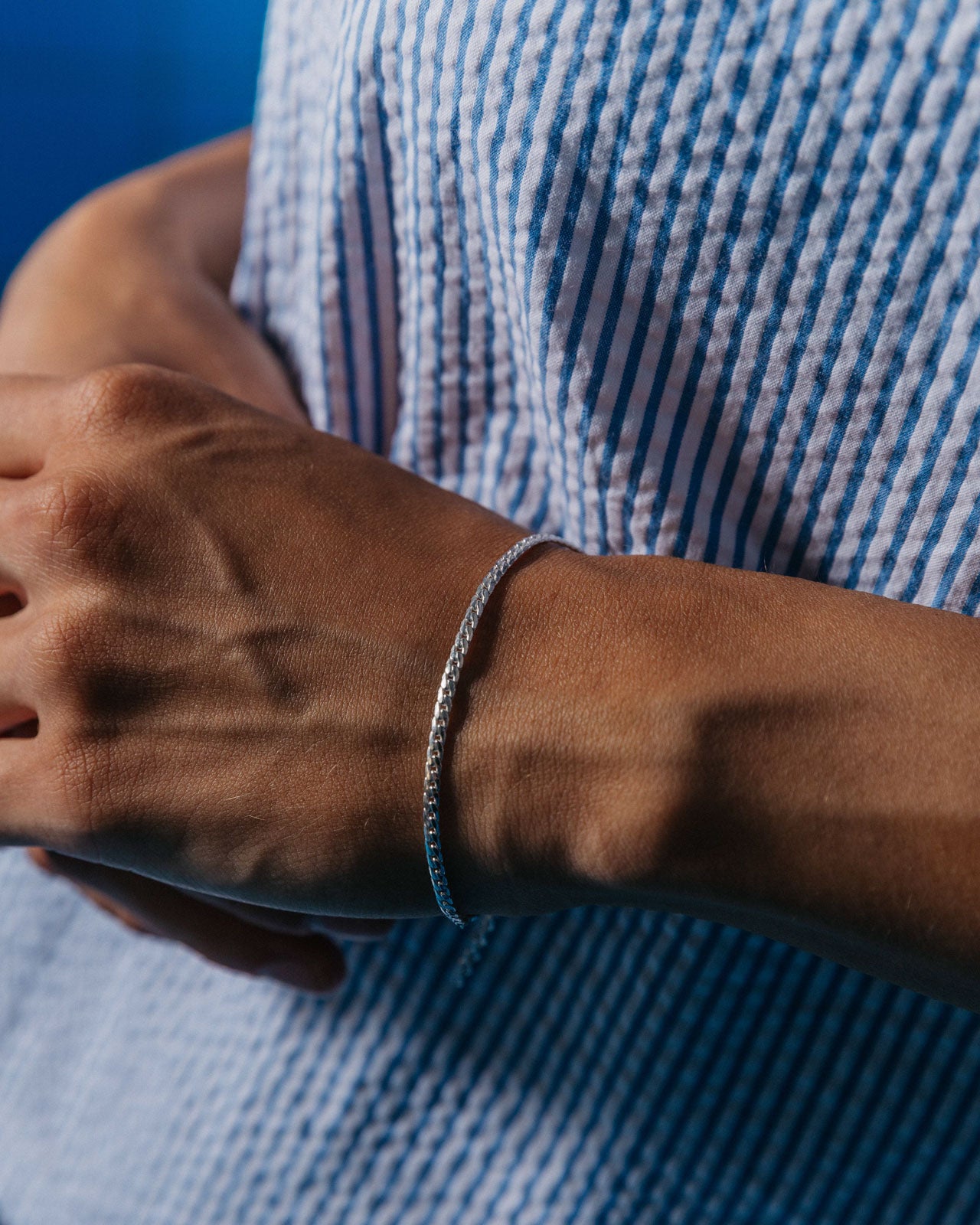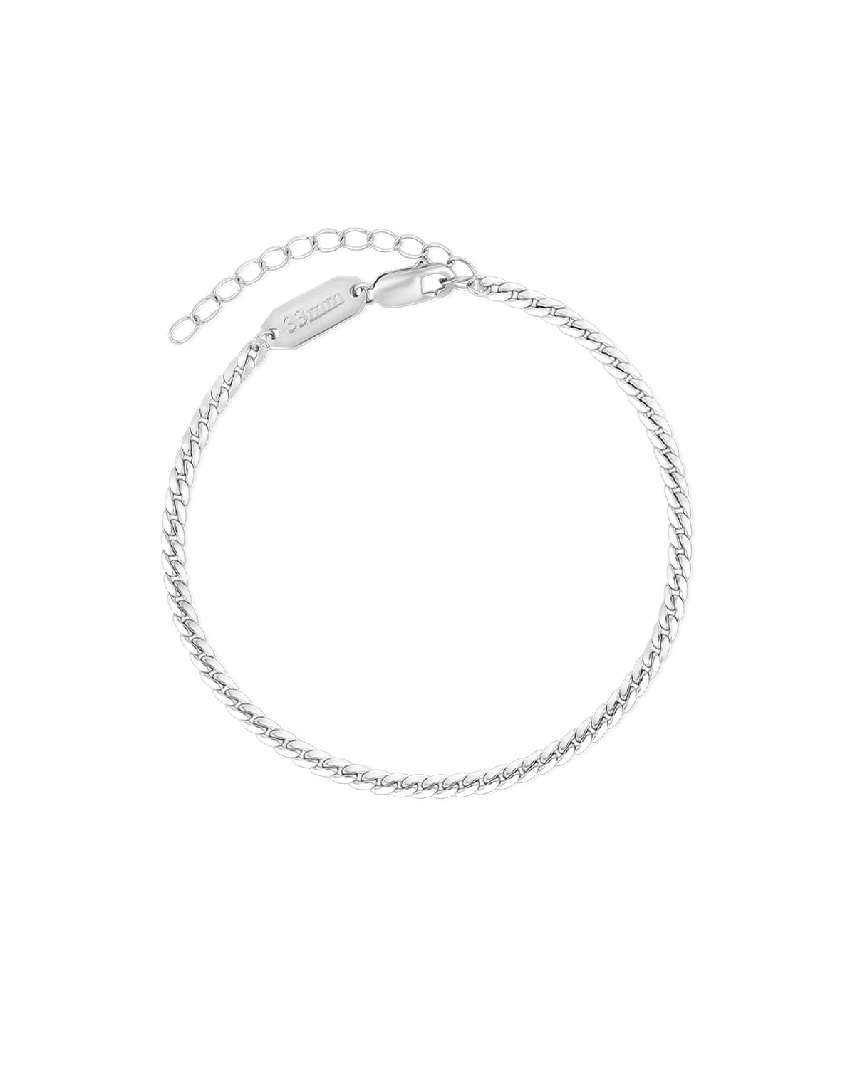 The bracelet counterpart to Jensen. A compact flat snake chain that glides naturally with every movement. Crafted from Sterling Silver and perfect for every day wear.