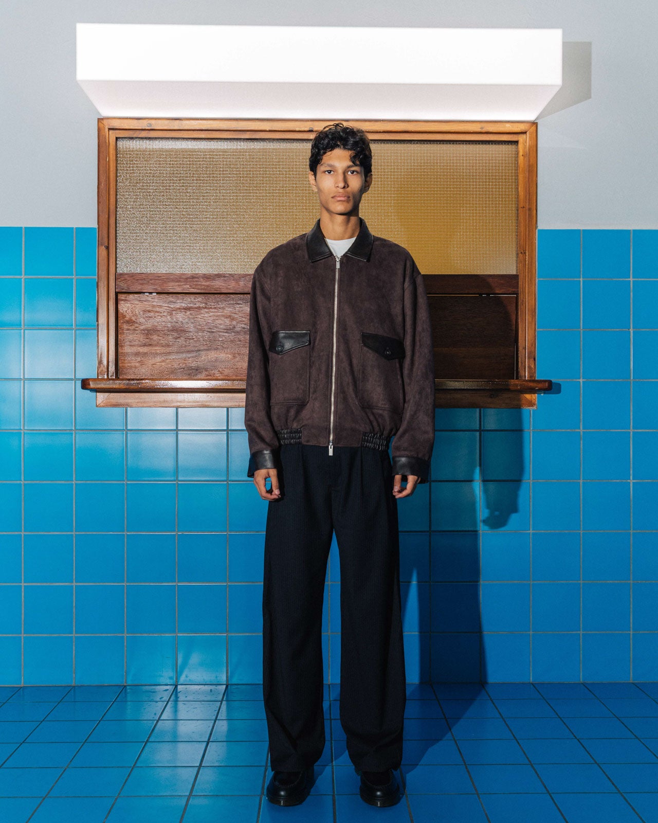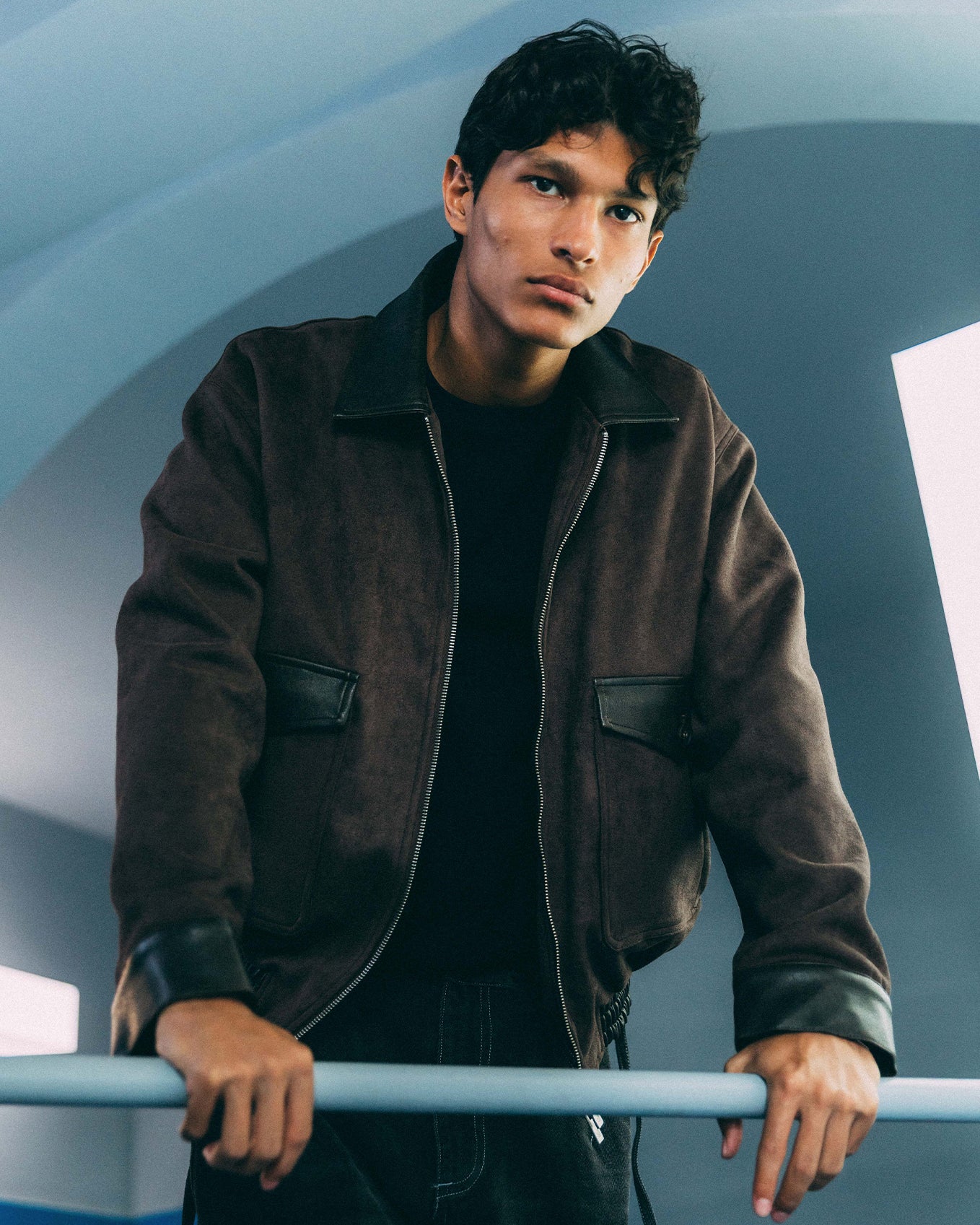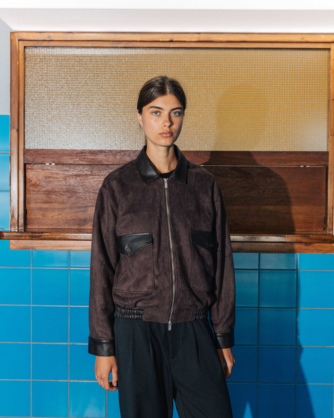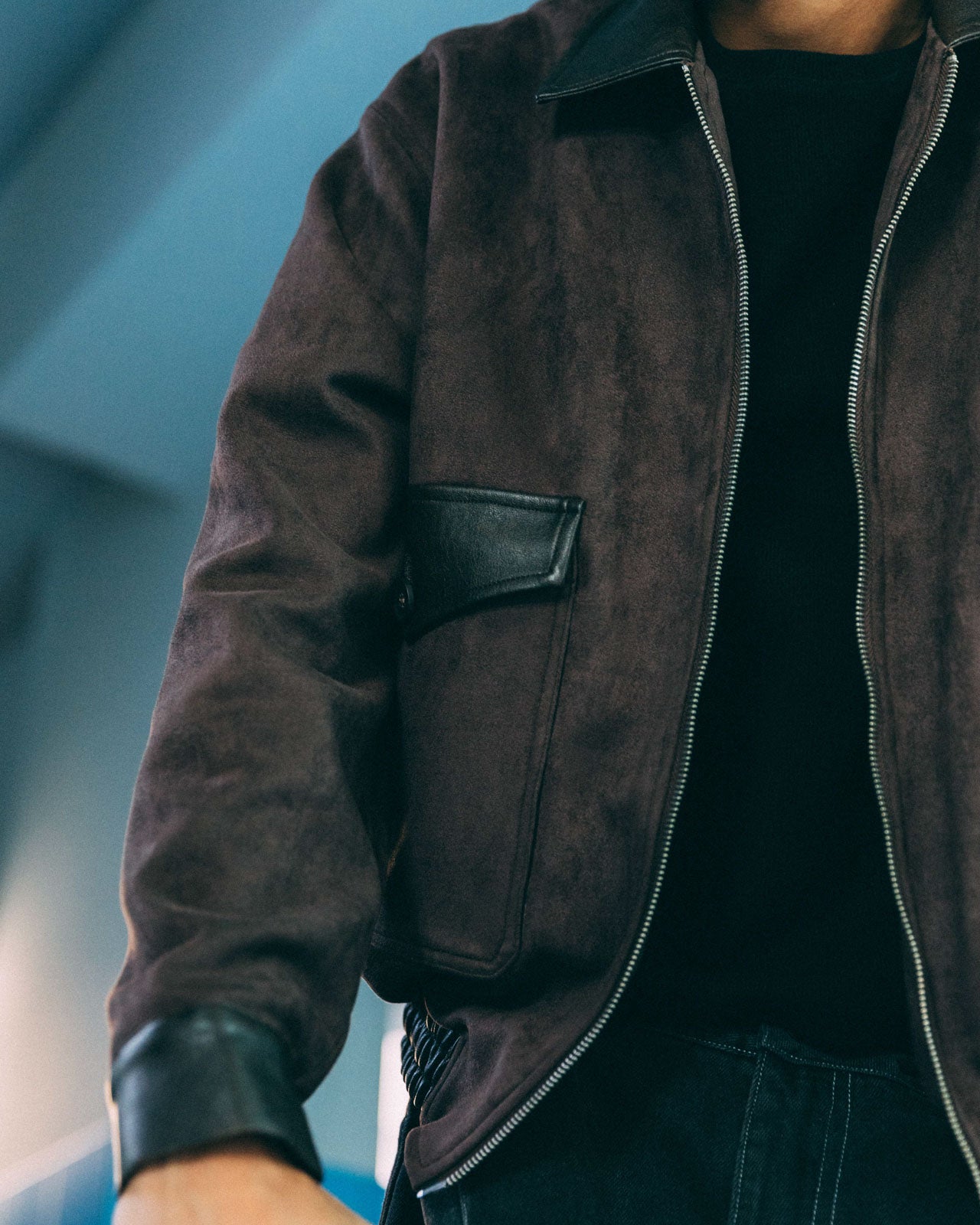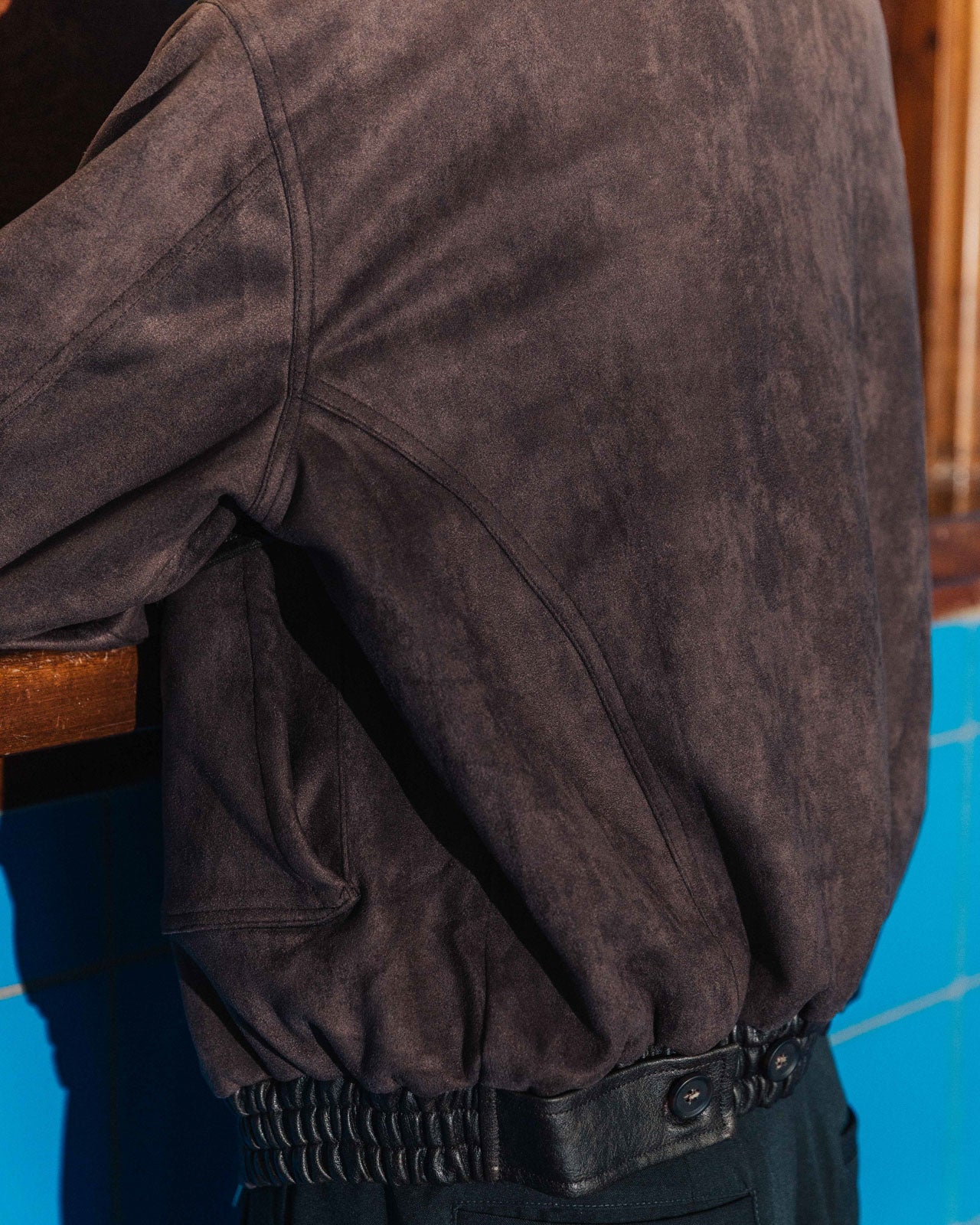 Alvaro is a modern take on the G-1 bomber jacket, with a soft, brush-like finish. A nod to the classic design, it features leather accents across the cuffs, waistband, and collar. Two double-layered pockets with contrast flaps and dyed-to-match buttons tie the piece together. The details continue inside with an internal chest pocket and leather lash tab.