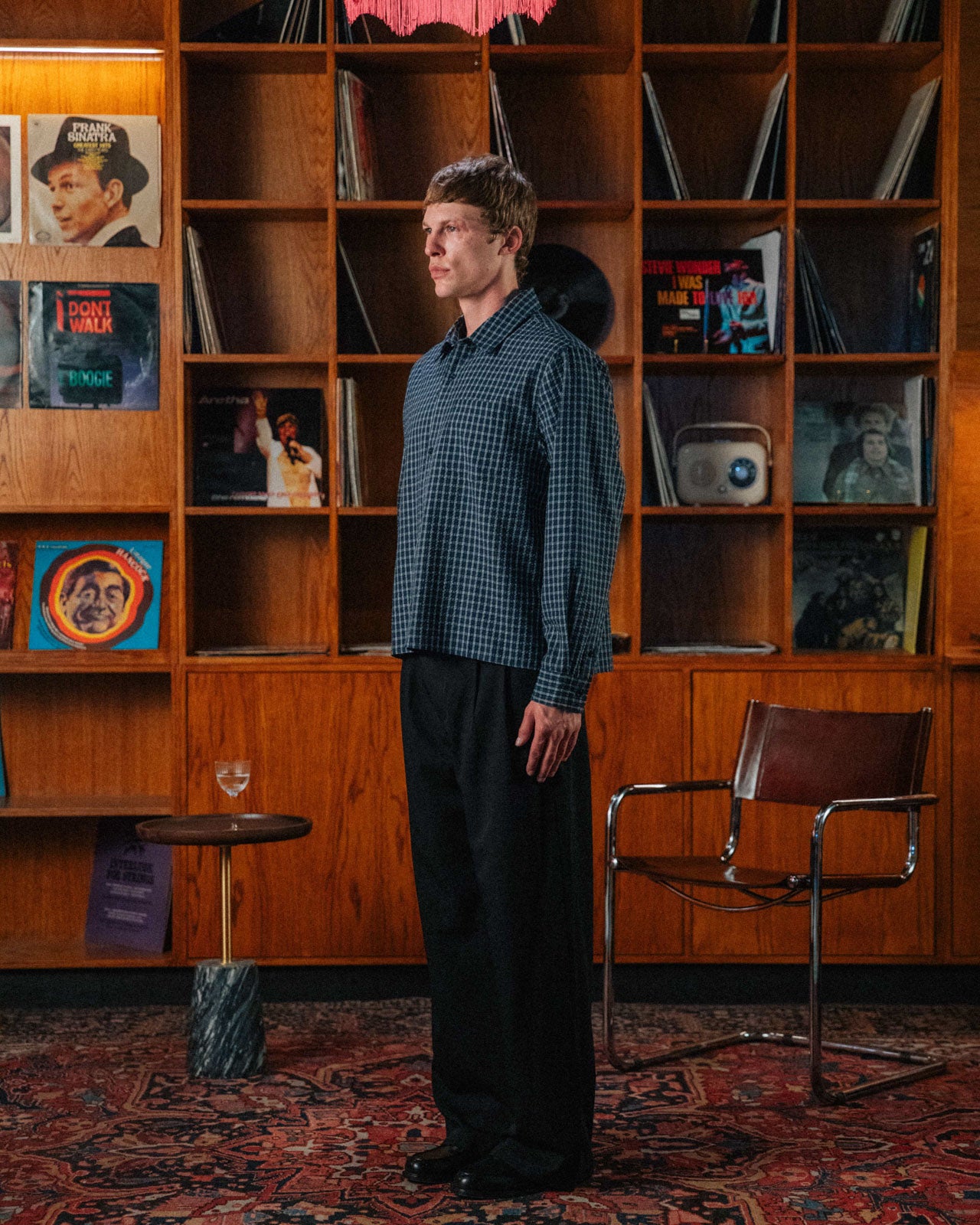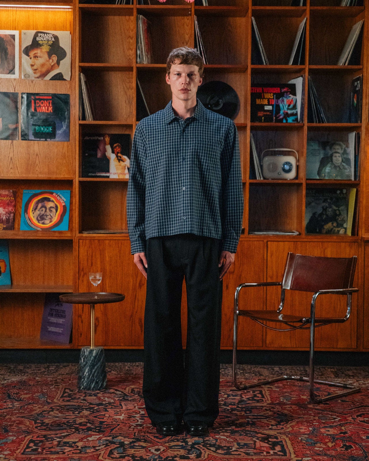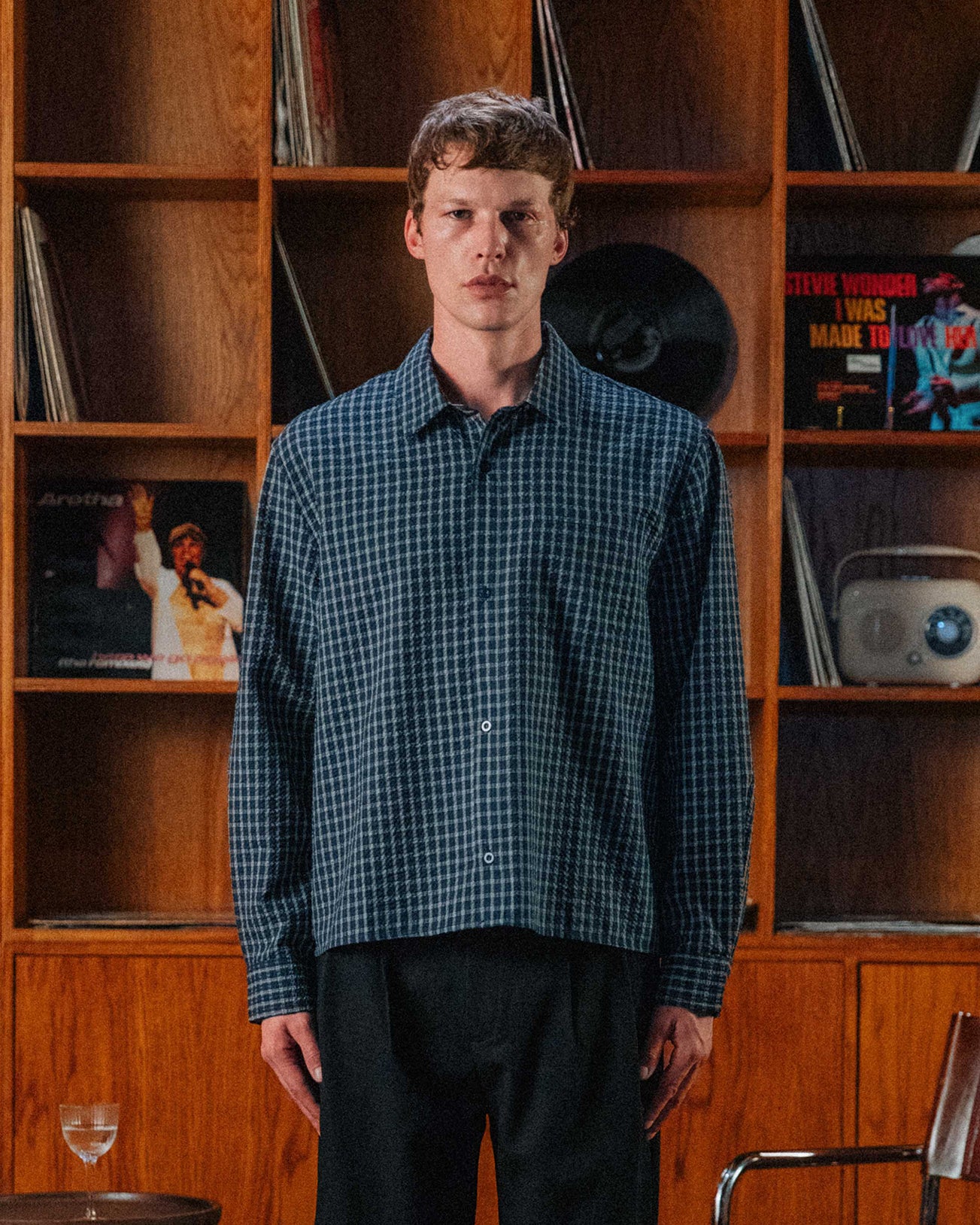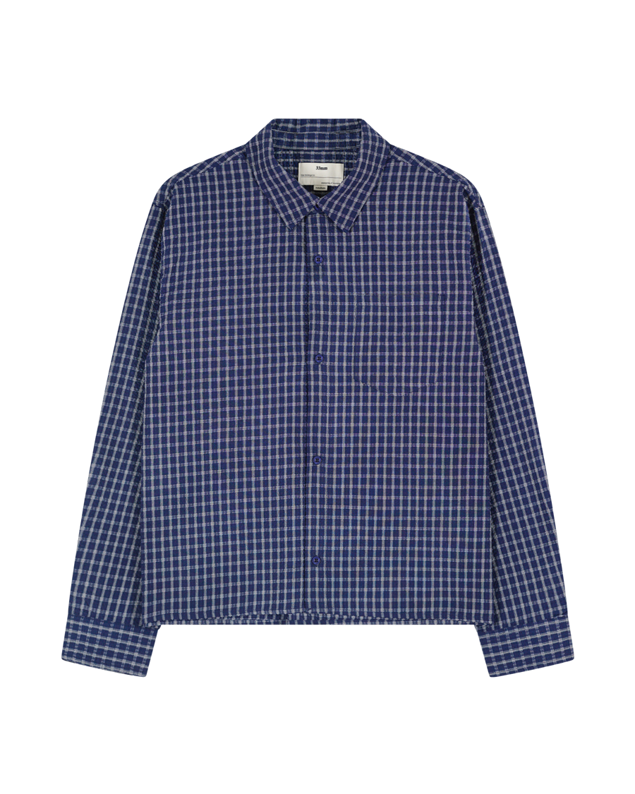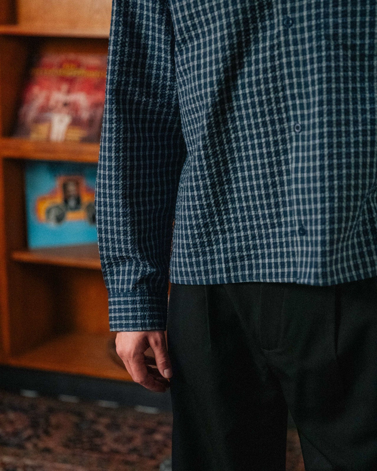 The long sleeved counterpart of our beloved Josiah. In our signature boxy fit with a deep blue base and white check. It's 100% cotton with a seersucker texture to add detail and reinforce structure.
