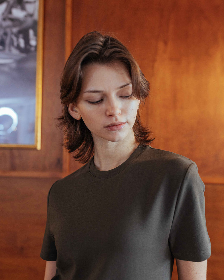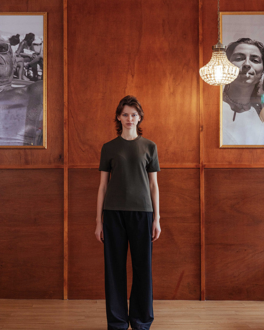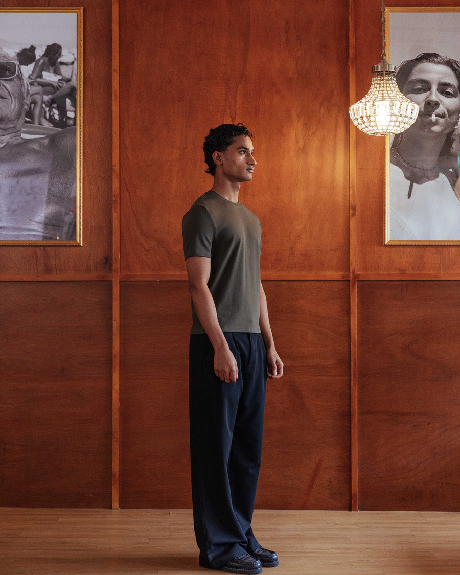 A slightly cropped tee inspired by the great Marlon Brando. Designed with a slim fit that contours the body, sitting neatly at the waistband with no tuck required. We apologise in advance that no other tee will compare.