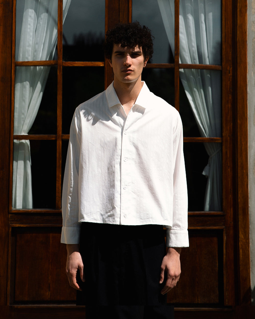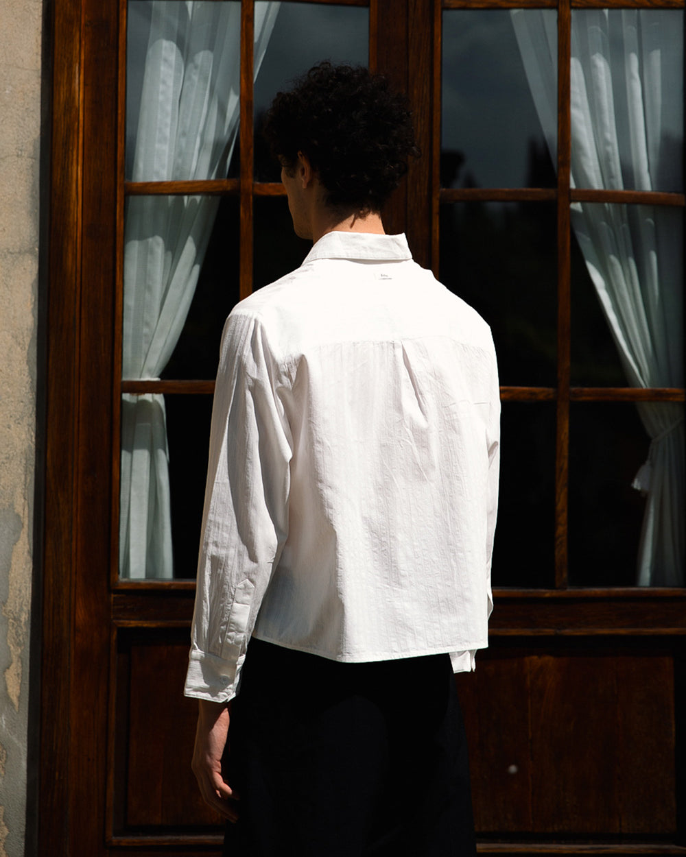 When we designed this shirt we imagined Alain Delon going on a romantic dinner date at a restaurant right next to the Mediterranean sea. Crafted from 100% cotton, it's ideal for summer wear or as a versatile layering piece in colder seasons. Features our signature 33mm woven label at the back and is slightly cropped with a boxy fit.