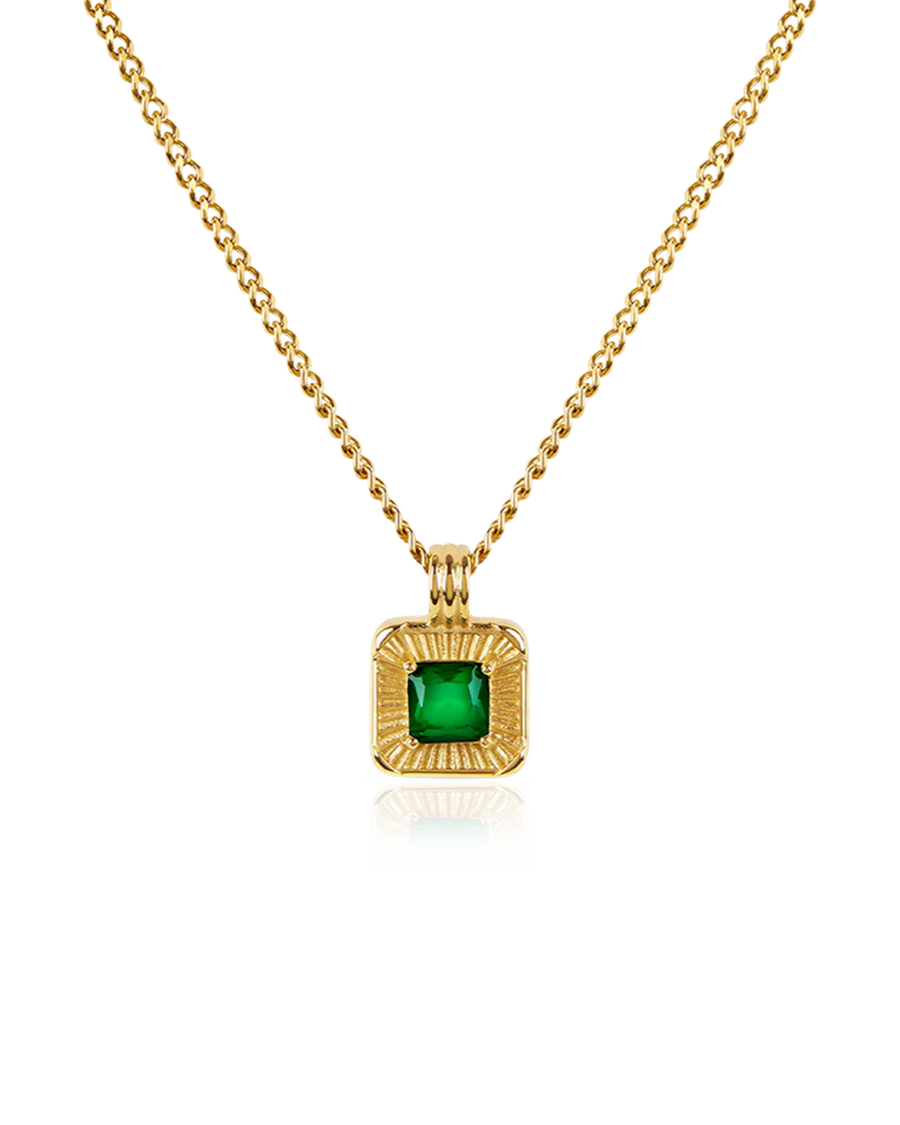 The kind of beauty you may begin to take for granted with everyday wear. Its intricacy, elegance and the central Emerald glass stone is always noted by passersby.