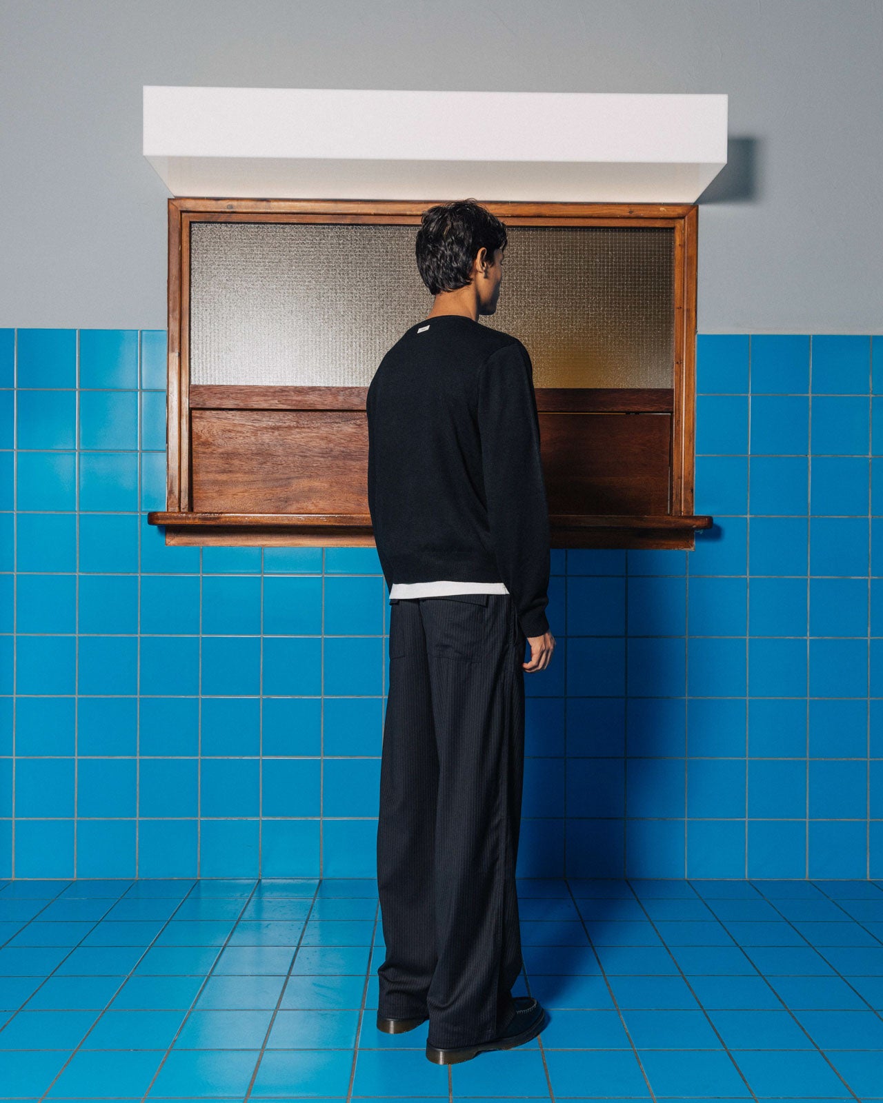 Not your average dark grey suit pants. Straight-leg fit with double darts on each leg and an adjustable external waistband. Features welt pockets alongside our embroidered logo for subtle refinement. Finished with a split hem so the trousers sit naturally over the shoe.