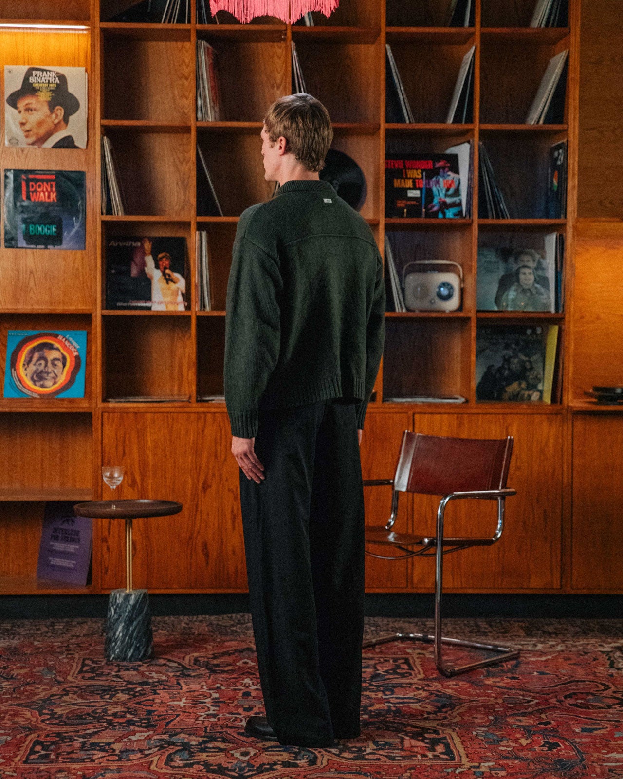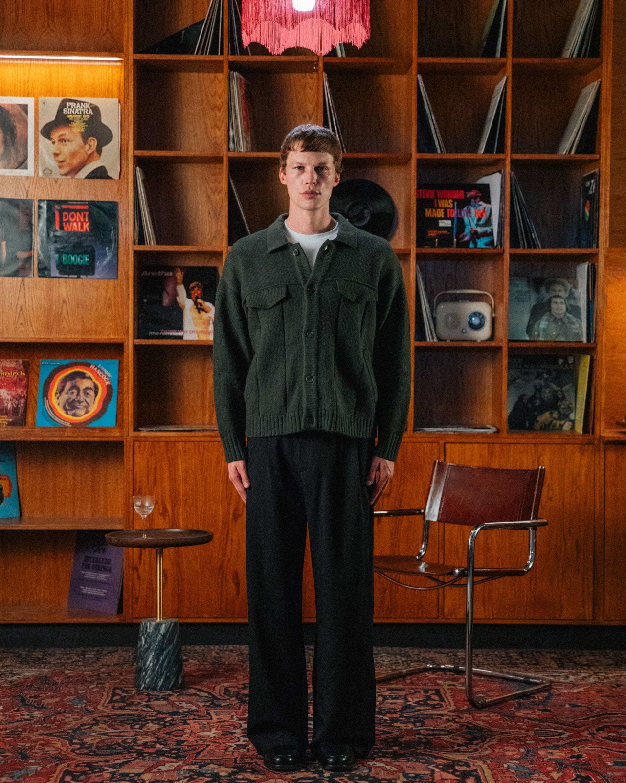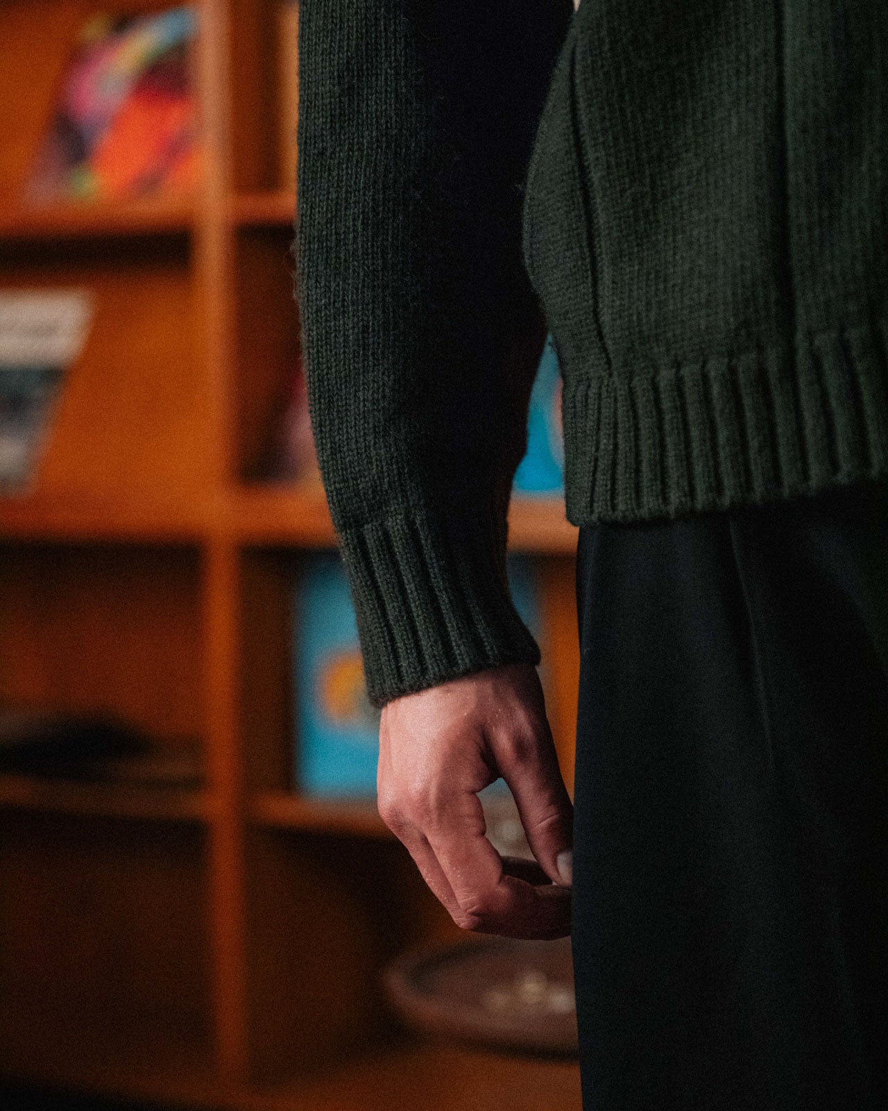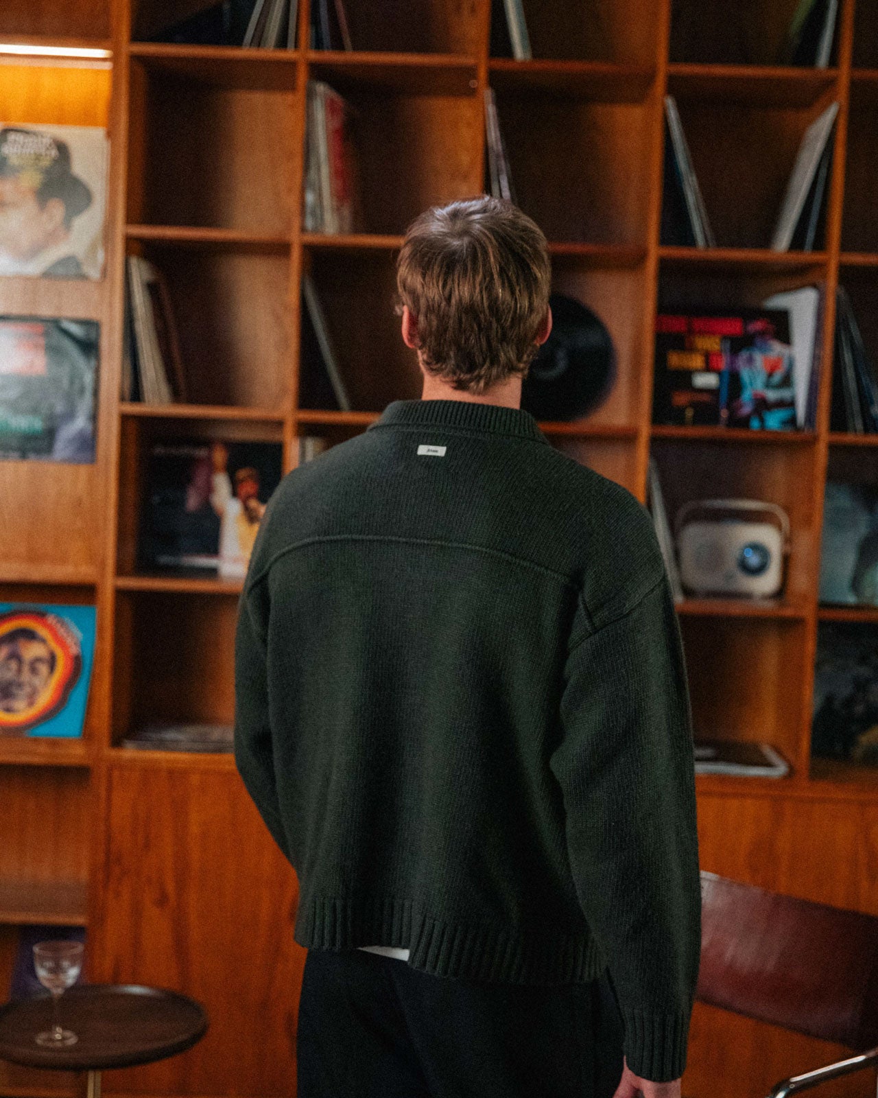 In a deep earthy green, Finley is a casual every day layer. It features two chest patch pockets, but it's the piped seams and front panel details that give it its vintage knitwear charm.