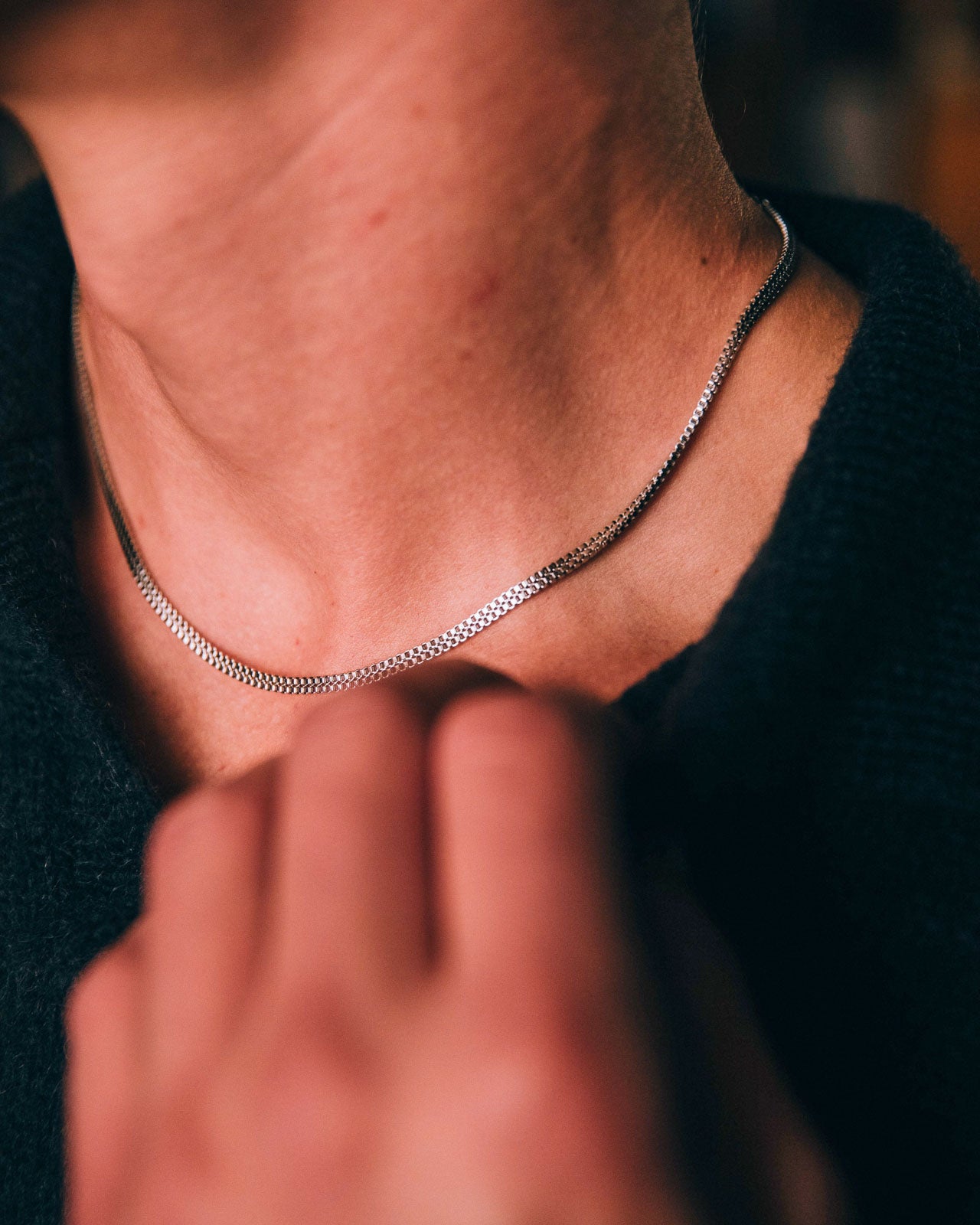 A double box chain necklace that proves gentle is powerful. For those who prefer to make more of a statement of their chain, or enjoy different depths and textures to layer with.