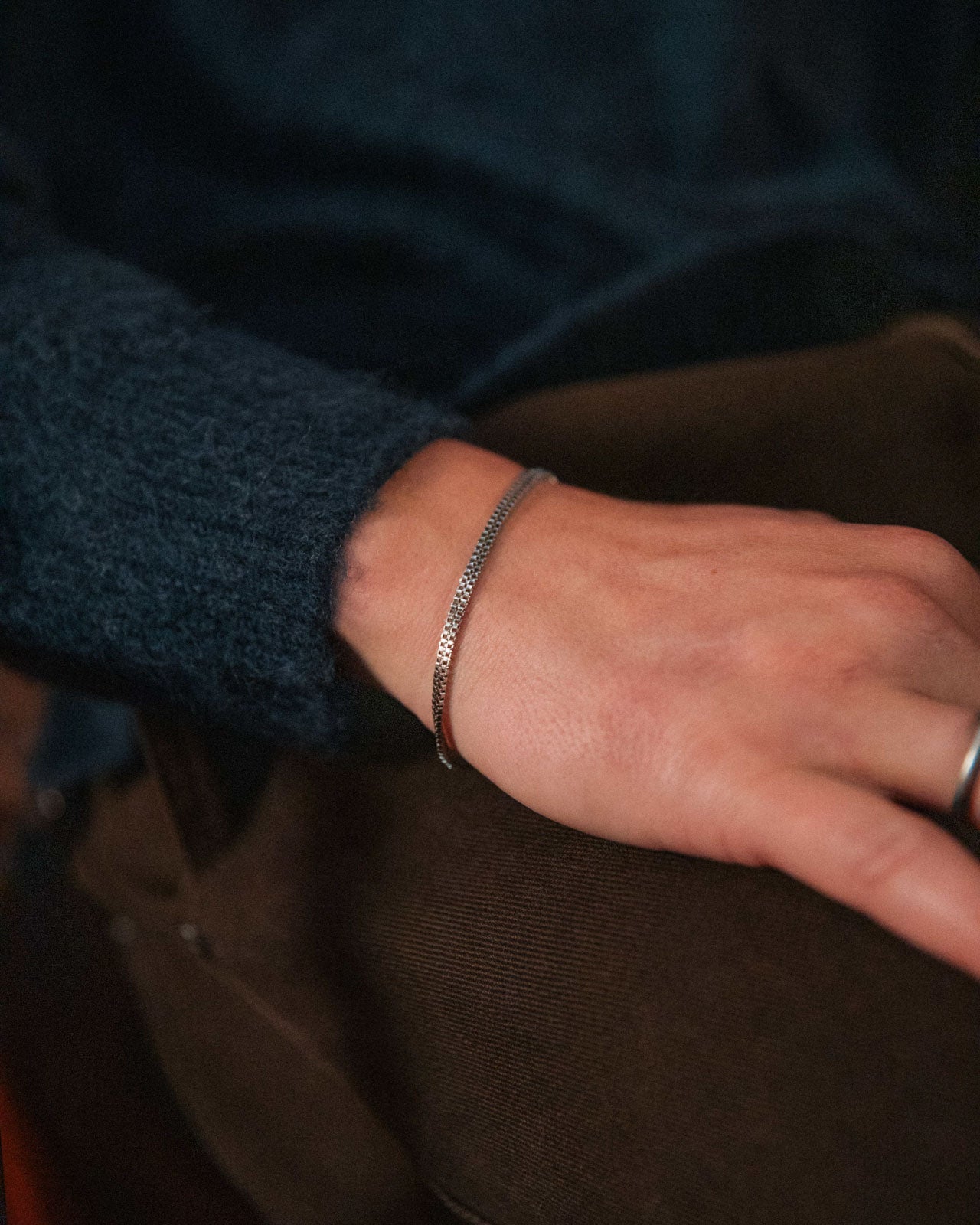 A double box chain bracelet that proves gentle is powerful. This fluid chain rests naturally, making it perfect for every day wear.