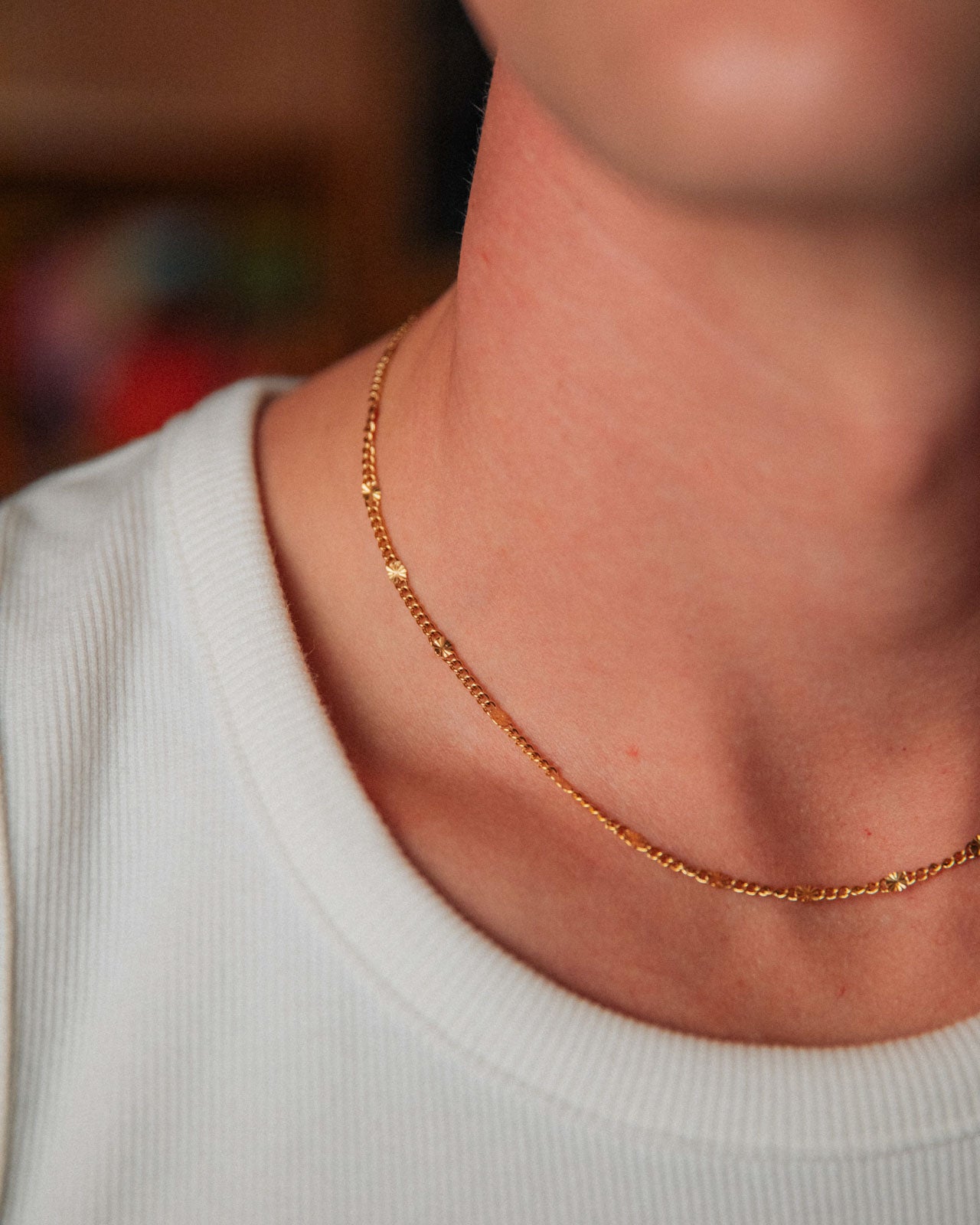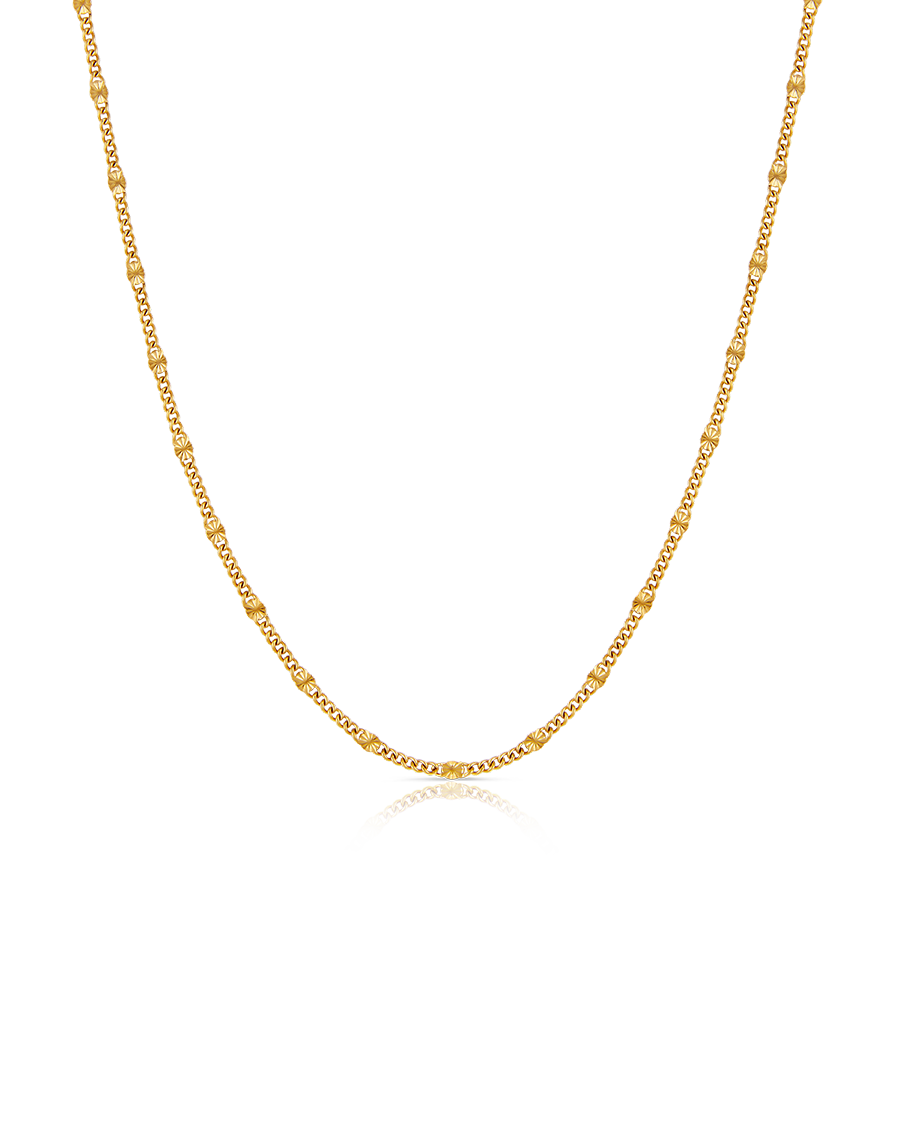 This sunburst chain lights up any outfit. Its enchanting detail adds texture and intrigue to even the most simple of looks.