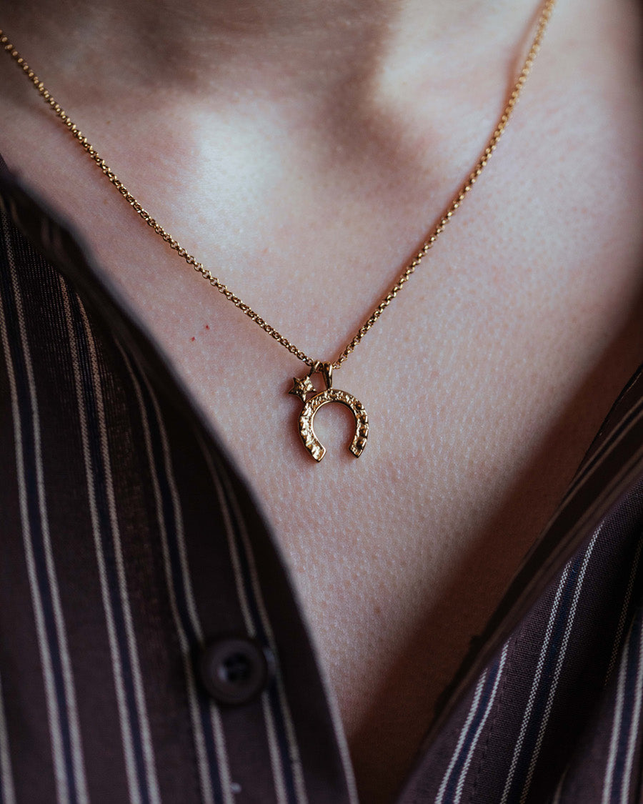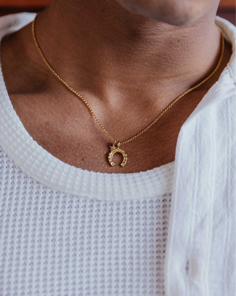 This double-charm necklace is designed to bring luck and abundance. Crafted from stainless steel, it’s ready for everyday wear and to ride into the year of the horse with you.