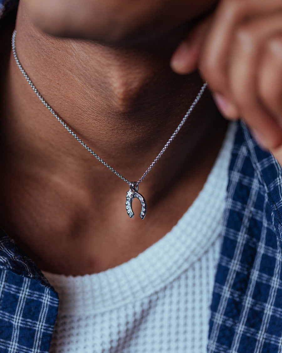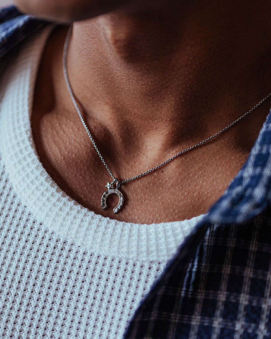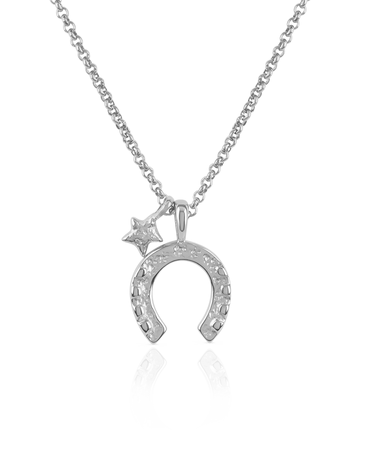This double-charm necklace is designed to bring luck and abundance. Crafted from stainless steel, it’s ready for everyday wear and to ride into the year of the horse with you.