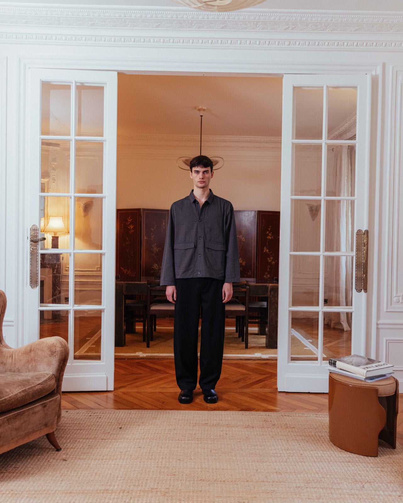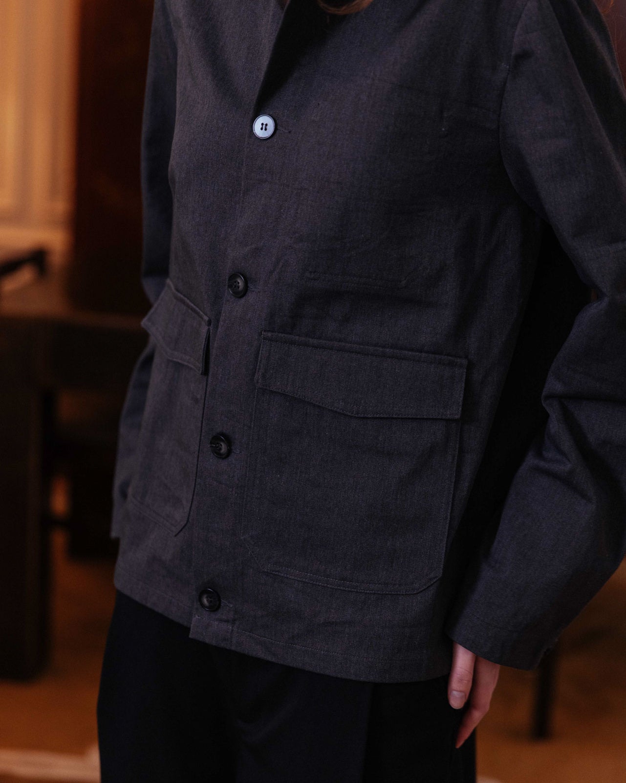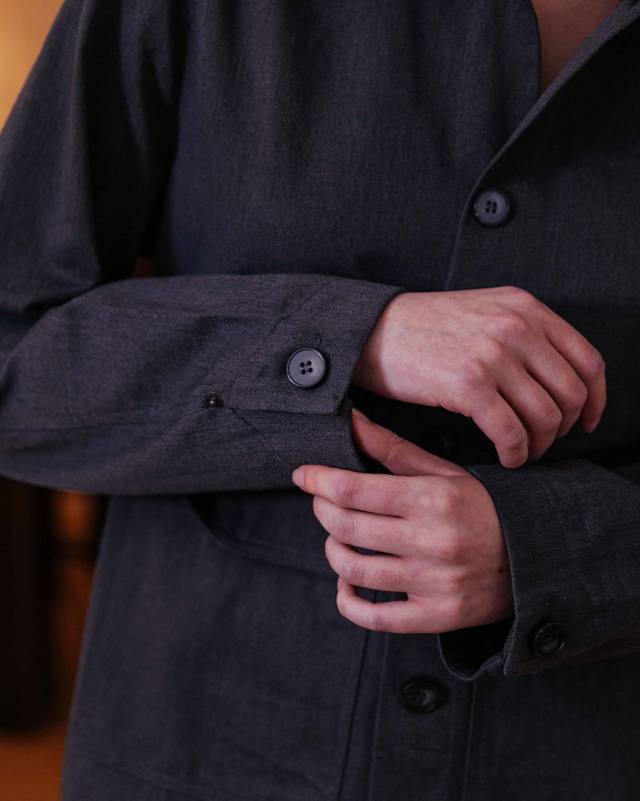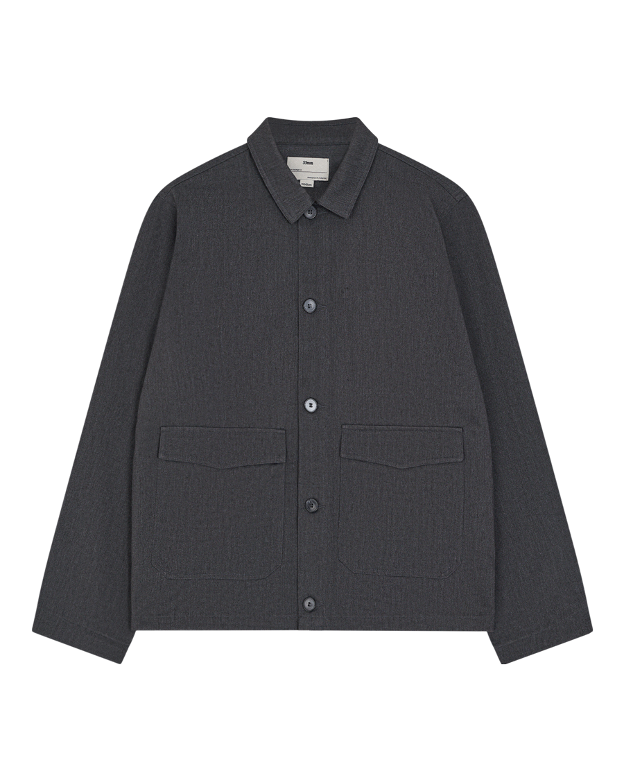 A canvas overshirt inspired by traditional chore jackets. Featuring front flap pockets and an internal chest pocket, utility is the main focus. Crafted from a neutral slate grey, your styling options are endless.