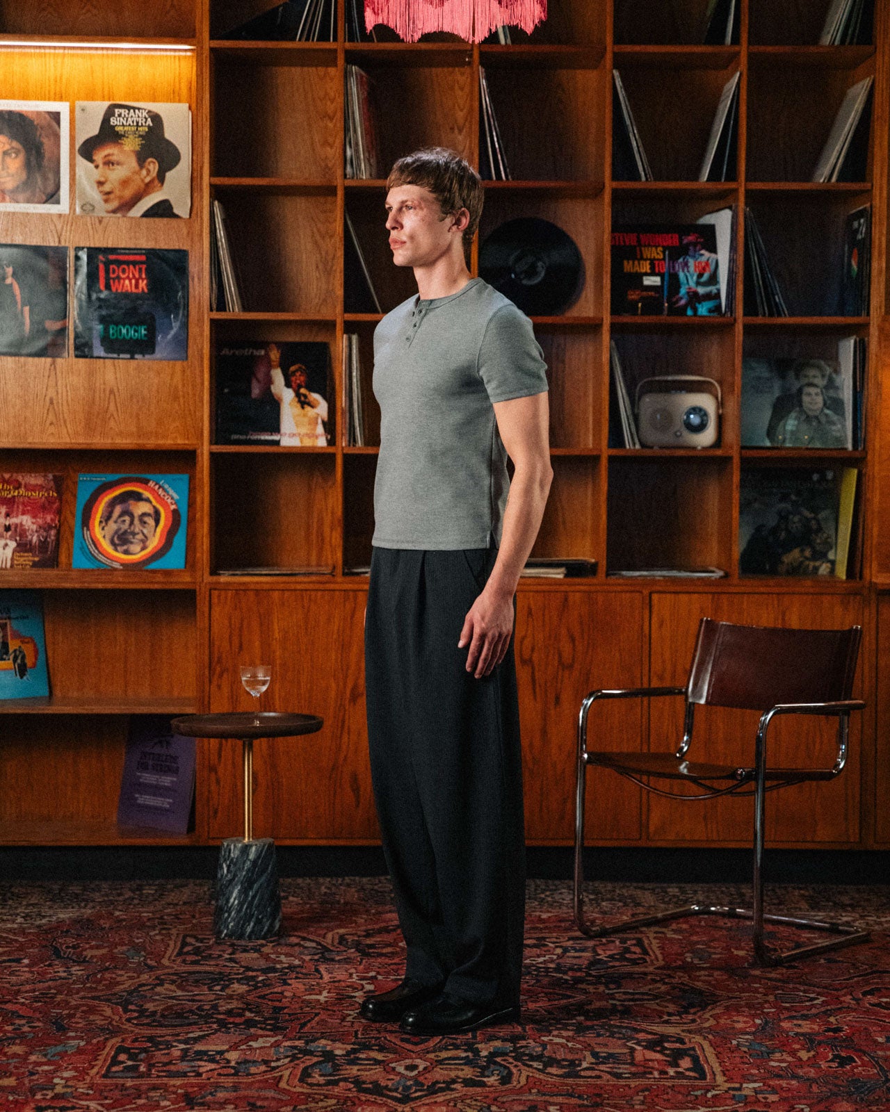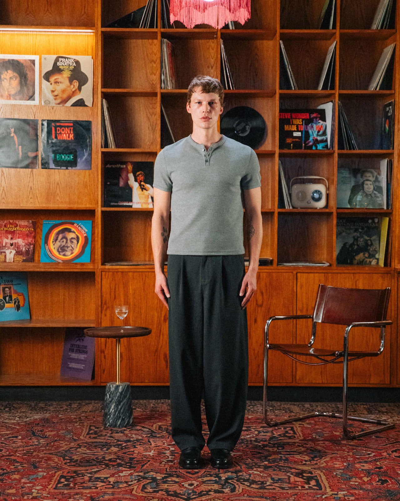 The waffle henley of a '90s actor straight off set. Nils skims the body with its slim fit and slight crop for a shrunken look. With the waffle texture continuing around the openings, it's a sleek layering piece beyond your average basic.