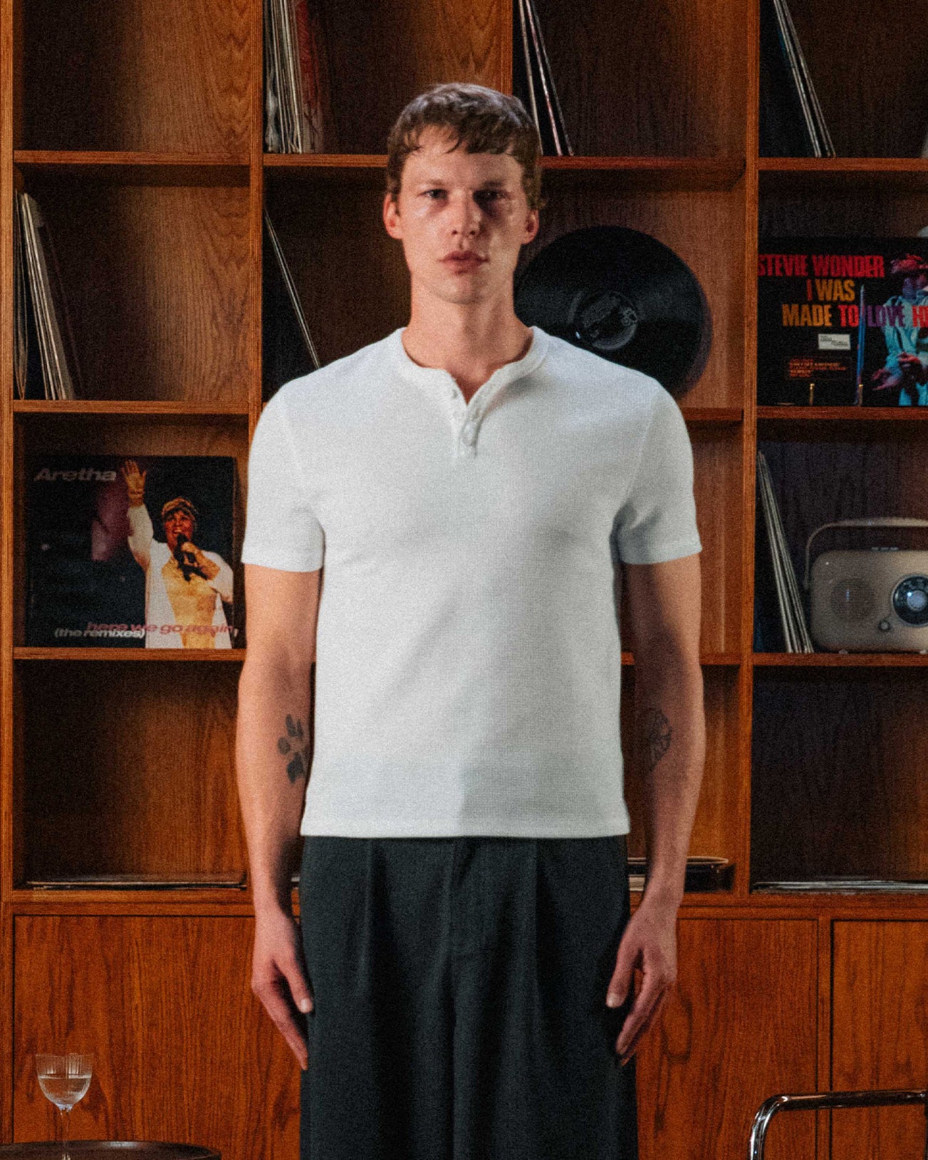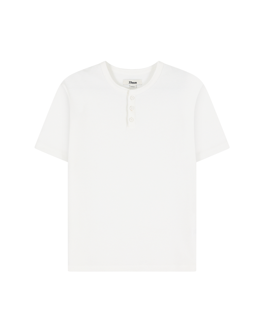 The waffle henley of a '90s actor straight off set. Nils skims the body with its slim fit and slight crop for a shrunken look. With the waffle texture continuing around the openings, it's a sleek layering piece beyond your average basic.
