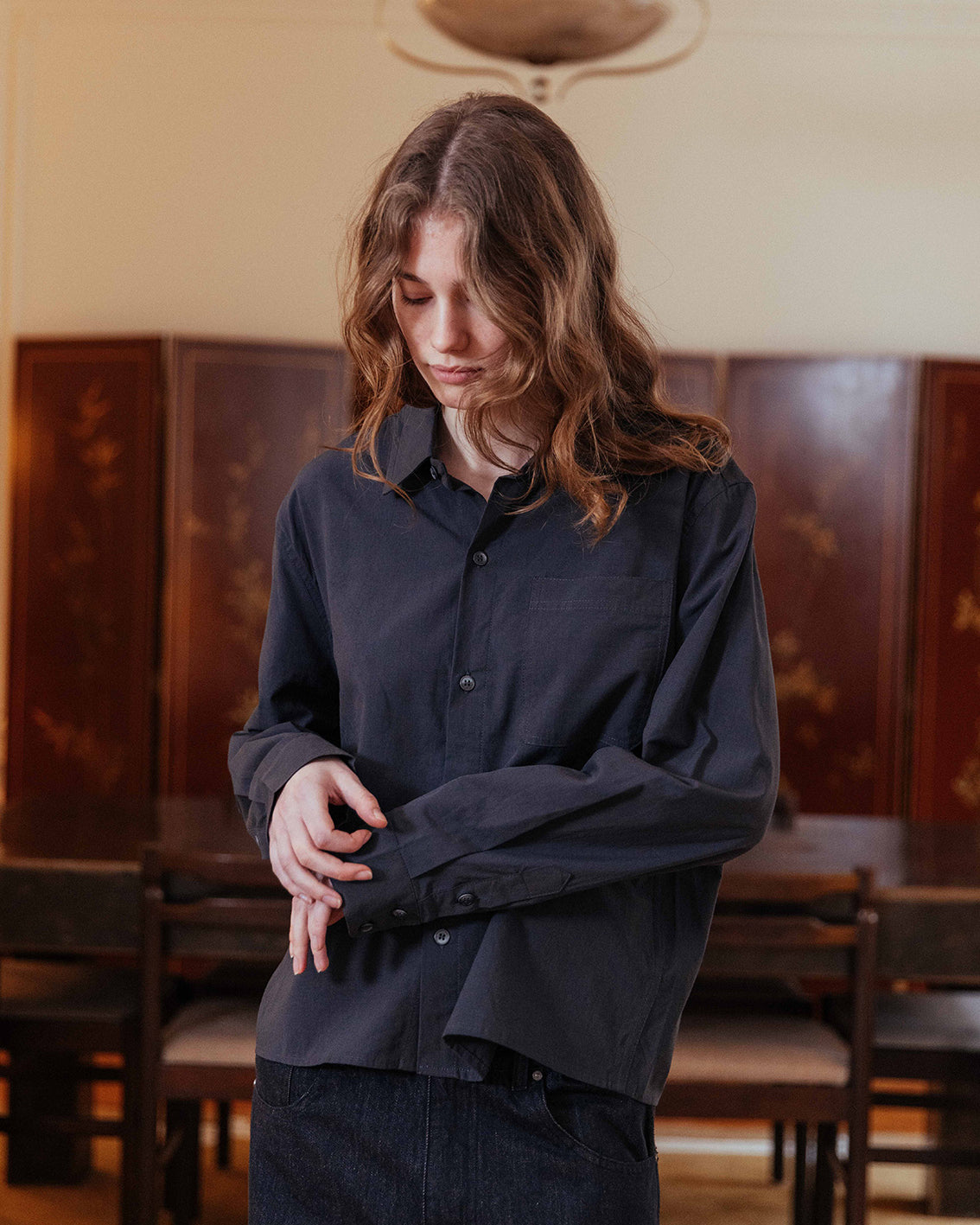 A gentle draping of fabric, this lightweight button up welcomes in a tender breeze on balmy days. Or throw it over an Andersen tank for an effortless layered look.
