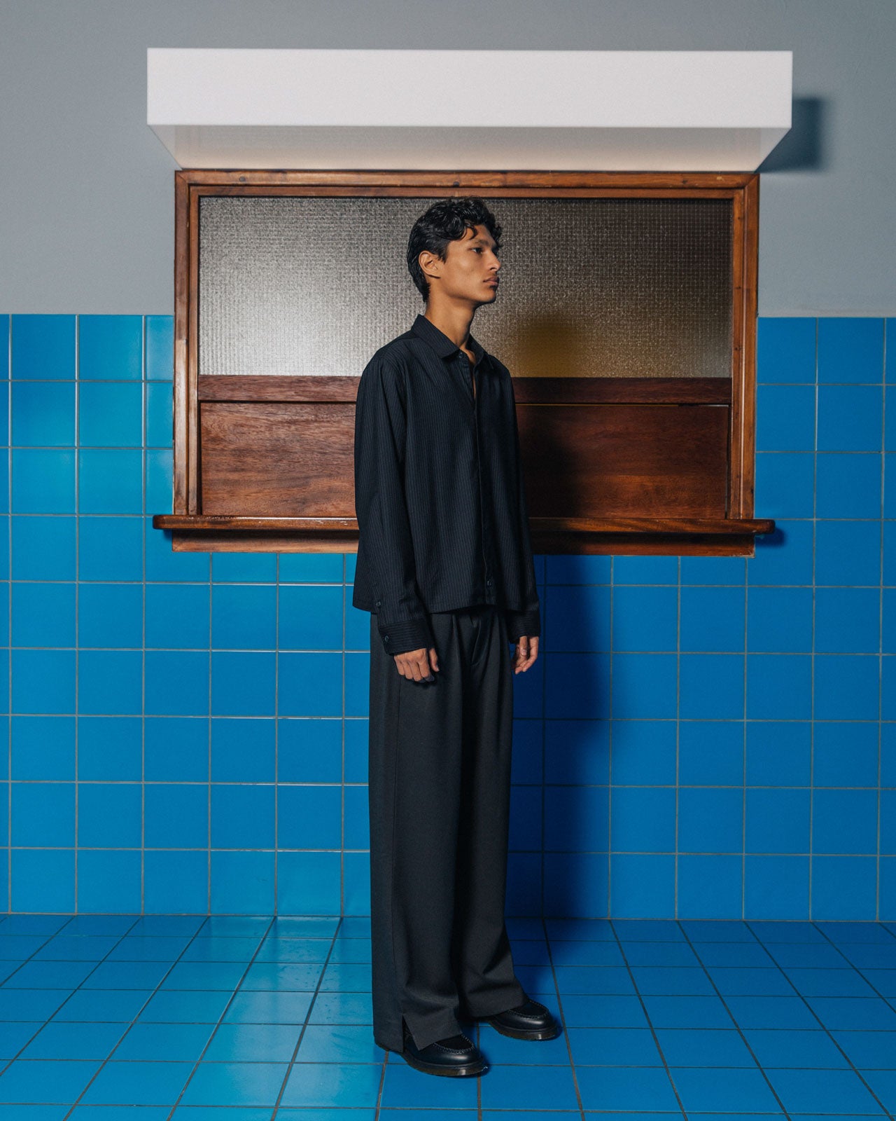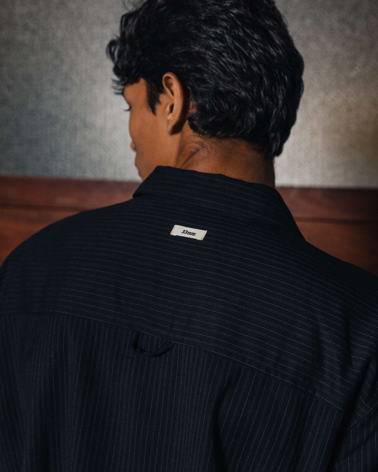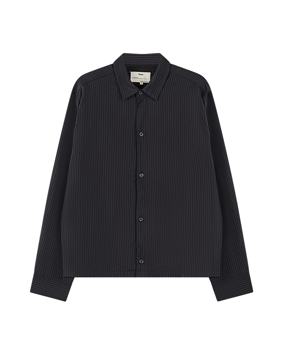 Our signature shirt silhouette, slightly cropped and boxy, in a subtle pinstripe and lined for added structure. Pair with Emeric to complete the set, or style alone and let its delicate detail do the talking. Finished with locker loop detail on the reverse and our branded label.