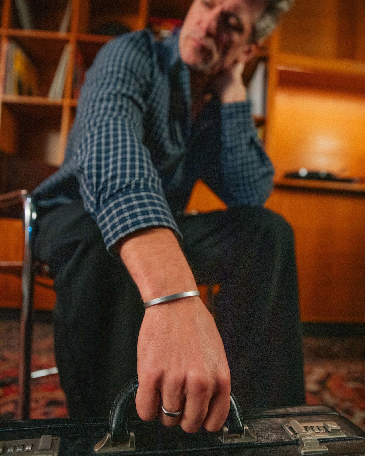 An adjustable cuff with an oxidised finish. With wear, it will become like the palm of your hand, telling stories of journeys and memories.